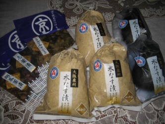 そして貞治夫婦からは、大阪「水茄子」の漬物。 | 大阪岸和田の泉州でしか育たない希少な高級野菜と言われる水なす。 皮・肉質ともやわらかく、たっぷりと水分を含んだ水なすは、幻の茄子と言われる程。 包丁を使わず手でさいて食べる。 柔らかさとくせのない甘さは絶品だ。 届いたその日から 毎日、夕食に1ヶづつ食べていったが、日を追うごとに 浅漬けから、しっかりと漬け込んだ感じになっていく味わいで、そのジューシーさは 他の茄子の漬物とは断然違う。 糠漬けと水に漬けた水茄子の2種類があるが、甲乙つけられない程、どちらも美味しい。 食べた後の糠床を捨てないで、野菜を漬ければ、ぬか漬けが楽しめる。 この美味しい糠床のお陰で、素晴らしい味の糠漬けが食べられるのだ。万歳!!(笑) いくら美味しい糠漬けでも、だんだん飽きてきてしまう私なので、秋頃には 糠床を捨ててしまうけれどね。 美味しい漬けものをありがとう♪ |