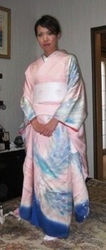 今日は着つけ教室の日。 着せ方(自分が着るのではなく、着せてあげる着つけ)を習い始めて1年位になる。 始めは紬などの滑らない着せやすい普段着の着物から始まって、 次に絹の着物の垂れ物になり、今は振り袖の着せ方を習っている。 絹の着物はどうしても垂れてしまい思うように着せてあげる事が出来ないのだが、 振り袖は長い袖なので、よけい重くなり難しいのだ。 まず、伊達襟の付け方を習った。 そしてジャンケンをして着せ合う相手を決める。 今日は私とT見さん。 SさんとT田さんの組み合わせになった。 Sさんは、私より8カ月位後に入ったのに、もうほとんど追いついた感じなのだが、 少し遅れていて今は垂れ物の着せ方を習っている。 それで今日はSさんは振り袖を着せてもらう方にT田さんは垂れ物の着物を Sさんに着せてもらう事になった。 教室には2枚の振袖が用意してあるのだが、今日は孔雀の柄の可愛い振袖を着る事に。。
