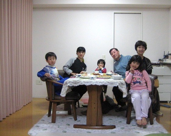 三太さんは、会社の人たちと、いつもの「栄寿司」で忘年会とタイへ転勤の三太さんの | 送別会を兼ねて飲み会だった。 帰りは夜中の2時過ぎだったみたい。 タイへの出発は1月2日。 お正月はのんびりと刈谷の家で過ごしたいという三太さん。 途中、浦安の三太さんの実家に寄ってから愛知に帰った5人だ。