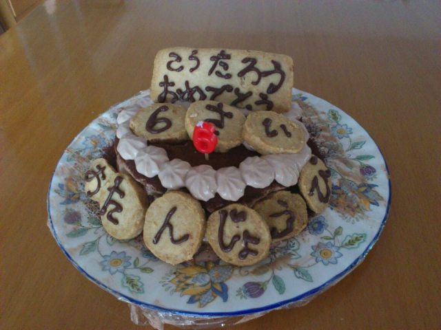投稿文より | やっぱり兄弟!一緒恰好して寝てます. 時々これにパパが加わることも(^^)/ 美映のフェイスブックには兄妹が3人、同じ恰好で寝ている写真が。。 偶然なのか、それとも兄妹という血がつながっているからの必然なのか、(笑) 三太さんも同じ格好で寝ている時があるんだって。。 子供の寝姿って可愛いよね。 面白い写真を撮って 日記にアップした事もあった。 有佳里が1歳になったばかりの頃、パパのお腹の上で寝ている写真と 光汰朗とマロンが、寝ている可愛い2ショットの写真を探してきた。 →ここ 投稿文より 今日は光汰朗の6歳の誕生日。 私、昨夜から発熱し、フラフラになりながらケーキ作りました。母、頑張る!!! 前々から「誕生日にケーキを作ってね。友達と食べる」と美映に言っていたとの事。 前日から頭が痛くて夜には熱も出て、誕生日の日は最悪の体調だったらしいが、 光汰朗が楽しみにしているので、いつもの倍以上の時間がかかったらしいが ケーキを作ったんだって。。 ケーキのアップ写真は →ここ 子供の誕生日にはケーキを焼くのが恒例になっているんだね。 私達がタイに行っていた6月30日、朝大の誕生日ケーキも作っていた。 これからも、1年に3回ある子供の誕生日ケーキ作り、頑張ってね。 |