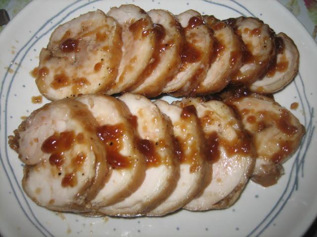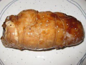 妹から作り方を教えてもらった鶏のチャーシューは、美味しいのに簡単! が気にって、北海道から帰ってきて2週間の間に3回も作っている。 レシピは→ ここ 鶏肉をたこ糸で縛ってから電子レンジで火を通すのだが、そのたこ糸が 東京の家に置いてあって、宇都宮には持ってきていない事が分かった。 それで思いついたのが木綿糸を2本重ねて、たこ糸に替わりにした。 少し頼りない感じだが、なんとか鶏肉を丸める事は出来た。 出来上がった鶏チャーシューを冷めてから汁ごとナイロン袋に入れて冷蔵庫に入れておく。 鶏肉に味が浸み込み、汁にとろみが付き、肉にからんで いっそう美味しくなった。 もちろん、そのまま食べても美味しいが、ラーメン、うどんなどに、これからの寒い季節、 鶏チャーシューの出番が増えそうだ。 温かい麺類にピッタリだと思うよ。