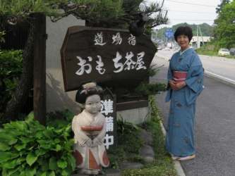 もちろん、私達夫婦は女坂を登ったのだが、思ったよりもきつかったので、 | 主人は半分の5合目付近で、私を待っている事になった。 広場になっているので、みんなここでひと休み。 これからの道のりを写真に撮った。