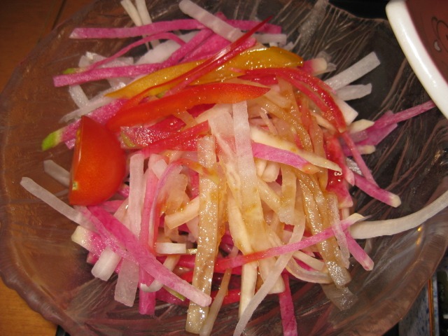 お店の人にみんなの写真を撮ってもらった。 乳母車の朝大が写っていないけど。。 | 朝大は、食べたいと言っていたが、ママが我慢してねと言い聞かせ、何も食べなかった。 ちなみに、もやしの根がきれいに取られていたので、パチリ! 流石〜と感心した。 残ったおかず類は、持ち帰り用にパックに詰めてっもらった。 待ってもらっていた車に乗り込み、ニューハーフショーの「MANBO」に向かった。 |