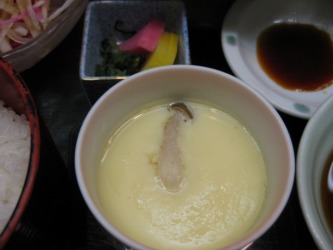茶碗蒸しが大好きな美映は、食べたいからと面倒がらずに作った。 | それに、きのうの蟹の「プー・パット・ポン・カ・リー」も食卓に。。 全てが美味しくて、苦しい程に食べてしまったが、体重増加が心配な私。(笑) |