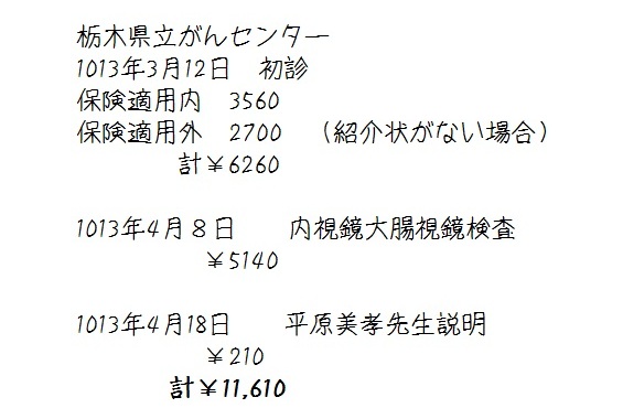 3月の始めに排便の後、ほんの少しの出血があったので、もしかして大腸癌?と 心配になり、病院で検査してもらおうと決めた。 どこの病院で診察するか迷ったが、どうせなら「栃木県立がんセンター」に行く事にした。 我が家から自転車で15分位で行ける近さも気に行った。 電話をすると親切に色々と教えてくれ、3月12日に予約出来た。