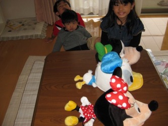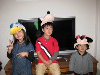 美映家族、日本滞在16日目 きのうはディズニーランドで遊んだ後、東京の友達の家に1泊し、楽しい夜を過ごし 今朝、10時過ぎに宇都宮に戻ってきた。 家に着くとディズニーランドで買ったミニーちゃん、ドナルドダック、プルートの帽子を かぶって見せてくれた。 帽子をかぶったら、それ風に見えるねと大笑い!。