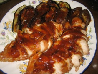 三太さんが宇都宮時代の友人数人と会って食事をすると出かけた。 | それで、今日の夕食は、子供たちが大好きな鶏肉料理にした。 鶏肉の味噌焼き→ここ と タンドリーチキン→ここ 茄子も焼いて鶏の味噌だれをかけて。。