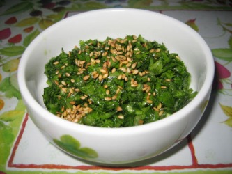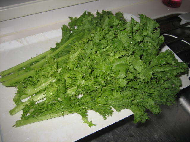 「たっぷり野菜の盛り合わせ」(サニーレタス、水菜、わさび菜、他)が運ばれてきた。 | 食べ終わった頃に「帆立と野菜のコンソメスープ」が。。熱々が嬉しい〜