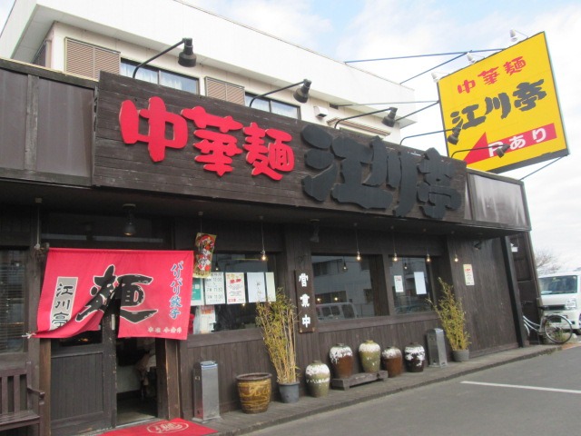 昨年も寄ったラーメンの「江川亭」へ。。 | 時間は11時30分頃だったが、かなりの客でいっぱいだった。 油が浮いている様な、かなり濃厚なこってり味。 あっさり好きには無理かも。。 主人は太麺、私は細麺を注文した。 1年振りの「江川亭」のラーメン 美味しかった〜 |