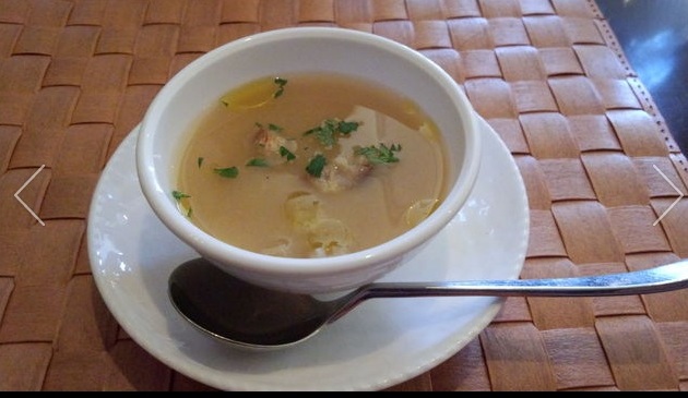 主人が食べた定食は蟹の味噌汁が付いている。 | 私は、おそばが食べたかったので、おそば付きの定食にしてもらった。