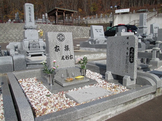 その後、主人の方のお墓参りをした。 | 朝里の奥にある小高い丘の上にある。 雪が降るとお参りが出来ないと思ううような場所だ。 主人の弟の義母(嫁の母)を、一緒のお墓に入れたいとの希望で、新しく弟が建てたお墓だ。 花瓶に花をさし、墓石にお水をかけて、お線香をあげ手を合わせた。