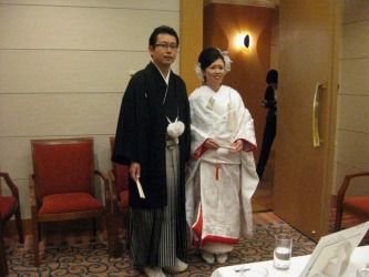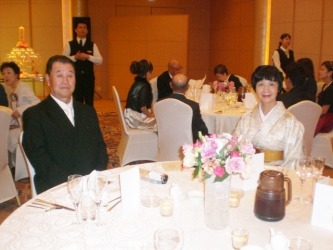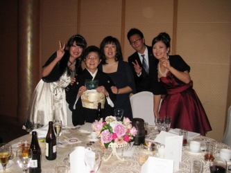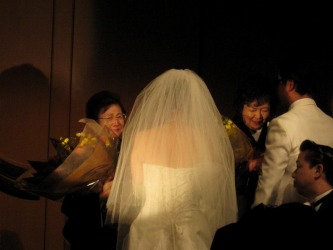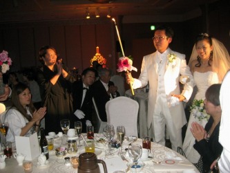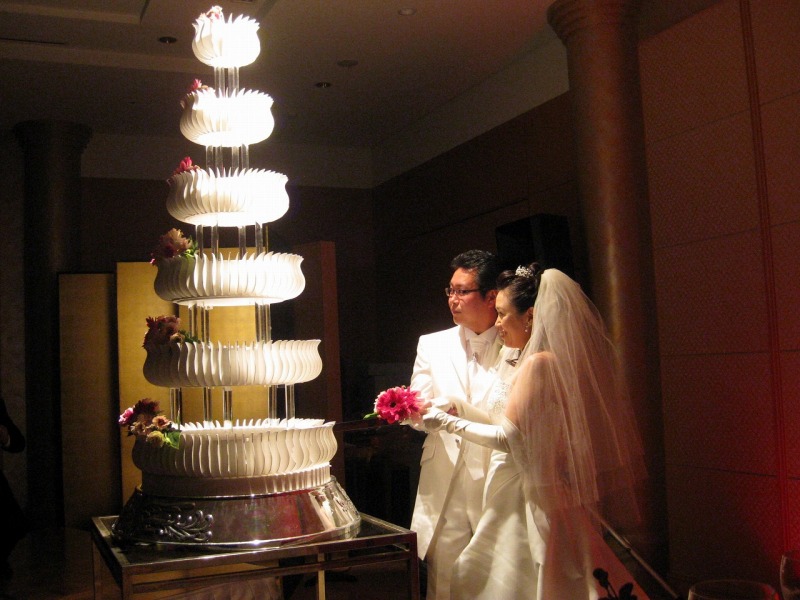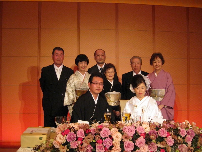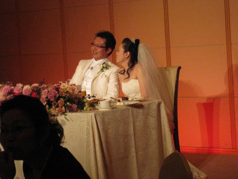 ケーキカットの2人。。 お互いの母親への花束贈呈の時、姉は泣いていたみたい。 | 扶三ちゃんが姉への感謝の手紙を読むと、ひとりの友達がこらえきれずに泣きだし、 大きな嗚咽が聞こえてきた。 その時のビデオは→ 1 と 2 2010年の4月30日になくなった父親は、厳しい人だった。 でも娘を思っての事だった。 この結婚式には出席出来なかったが、 扶三ちゃんが言うように、天国できっと見ている事でしょう。 若い人の結婚式は楽しい。けれど、アラフォーのカップルの結婚式は感動的だな〜と思った。 |