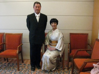 ホテルに戻る前に、ウイングベイ小樽のパンやさんで、美味しそうなパンを | 買って帰った。 妹が作ったお赤飯とパンで昼食をすませた。 結婚式の披露宴は、私達が宿泊している「グランドパーク小樽」でおこなわれる。 披露宴は6時からで、親族は4時45分集合との事だった。 昼食後、ベッドで横になると、うとうと寝てしまった。 1時間も熟睡した。 2時30分過ぎに着物を着始めた。 50肩のため腕が思うように上がらず、 着物はひとりで着る事が出来るのだが、帯は無理なので主人に手伝ってもらった。 宇都宮で3回程、主人との練習の甲斐があって、ま〜ま〜の出来あがりでホッとした。 ホテルの部屋に来てくれた妹夫婦と甥の3人と一緒に5階の親族控室に。。 妹と私の写真を撮っていると姉の長女家族5人が部屋に入ってきた。 姪の3人の子供が、こんなに立派に成長してと感慨深いものがある。 家族5人での記念撮影をした。 末っ子の純くんは中学3年生。 すっかり男らしくなっていてビックリ〜〜