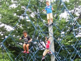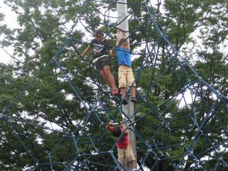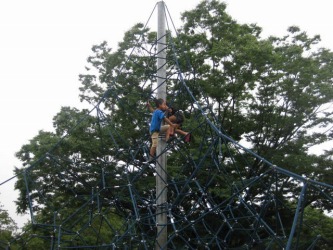 芝そりを15分位遊んでからアスレチックの場所に移動。。 | 無理なのでは?と思っていたアスレチックにも、平然と挑戦する梨子にはビックリ〜。ビデオは →ここ