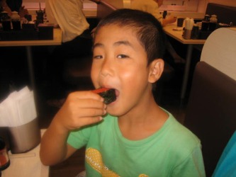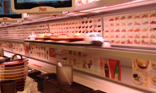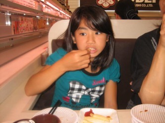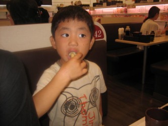 1週間振りに、ジムに行き エアロビクスを2レッスンやり、汗を流してきた。 楽しかった〜 今日の夕食は「魚べい」という回っていない回転寿司やさんに。。 今年の春頃に、我が家の近くに出来た「魚べい」は、駐車場は、いつもいっぱいで かなり繁盛している様子。 どんなお店なんだろうと興味がわいた。 調べてみると、注文したお寿司が新幹線で運ばれるという。 子供が喜びそうなお寿司屋さんという事で、子供たちを連れて行く事に。。